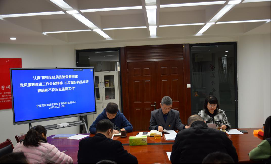 2月13日,宁夏药品审评查验和不良反应监测中心召开全体干部职工大会,认真学习贯彻2023年全区药品监督管理暨党风廉政建设工作会议精神,凝心聚力,扎实做好药品审评查验和不良反应监测工作。会上分别传达了自治区药品监督管理局党组书记、局长王生礼,自治区纪委监委驻市场监督管理厅纪检监察组组长戎尽寒重要讲话精神。中心副主任夏莉娟、逯海龙两名同志结合会议精神对分管工作进行了安排。