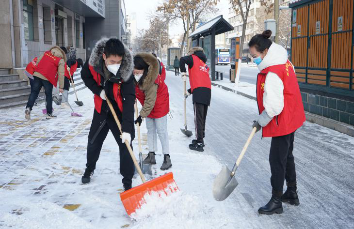 团员青年积极响应,不畏严寒、迅速行动,手持铁锨、扫把等工具,相互配合、通力协作,分别对文化街、中心巷、凤悦巷等部分路段积雪(冰)展开清扫铲除,为群众开辟出一条安全、畅通、有序的骑行(步行)道路通行环境,切实用实干实效展现药监担当。